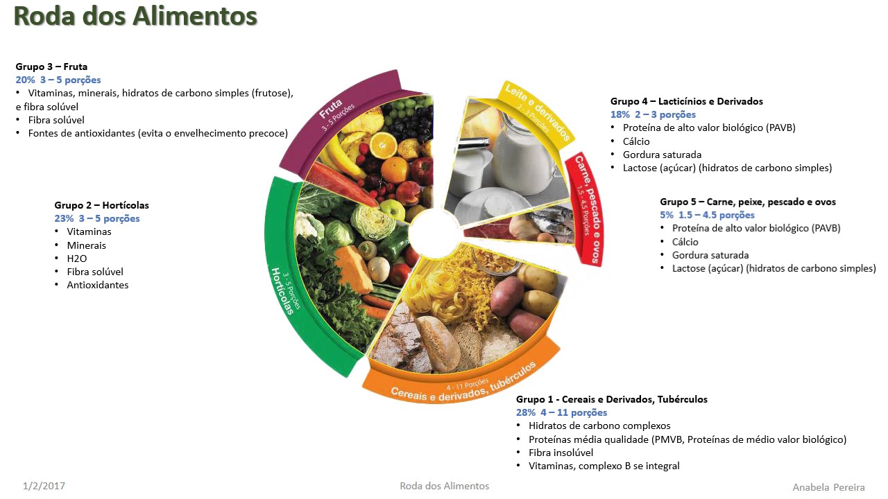 Roda dos alimentos é uma representação gráfica criada em portugal em 1977, no âmbito da campanha de educação alimentar saber comer é saber viver, que ajuda a escolher e combinar os alimentos que deverão fazer parte da alimentação diária. Comer alimentos de cada grupo e beber água diariamente a nova roda dos alimentos é composta por 7 grupos de alimentos de diferentes dimensões, os quais indicam a proporção de peso com que cada um deles deve estar. Roda dos alimentos como combinar alimentos e porcoes. No folheto explicativo da roda dos alimentos portuguesa de 2003 ainda se lê que os adultos podem consumir bebidas alcoólicas sem risco, acompanhando essa informação com. Desde 2016 que a roda dos alimentos mediterrânica inclui uma referência ao consumo moderado de vinho.